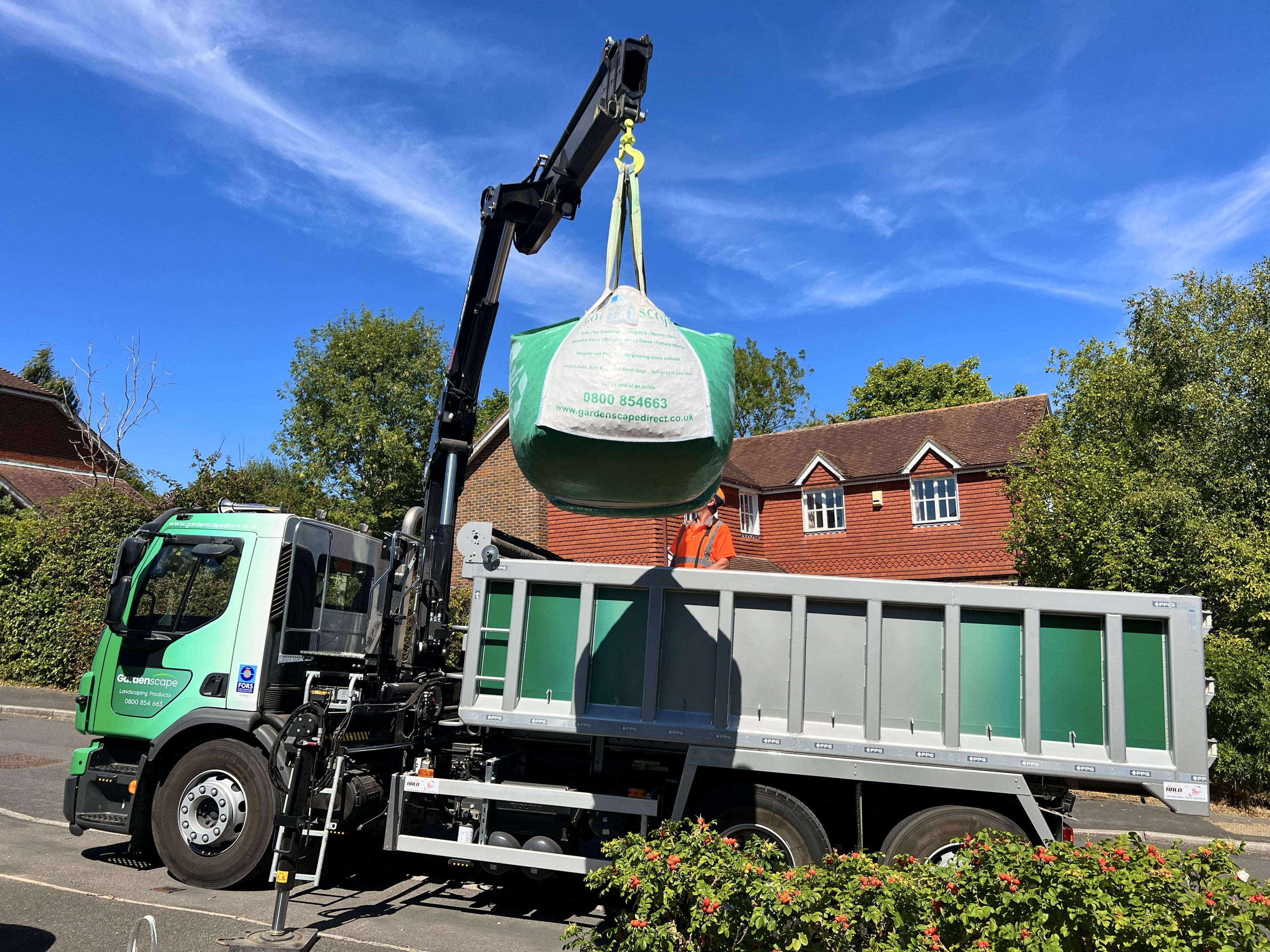 Please ensure that the bag is left within 3m of the roadside so that our lorries can have access to get to the bags with their cranes. Our drivers cannot lift the bag over parked vehicles or the cab of the lorry.